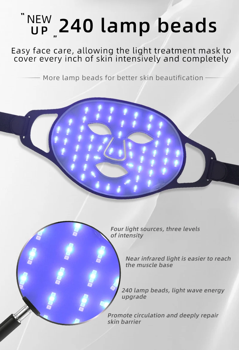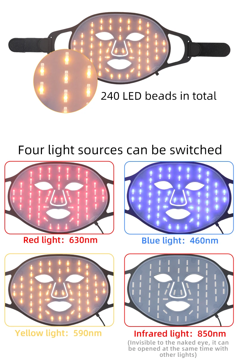 Masque facial LED en silicone, 4 couleurs, lumière LED, thérapie infrarouge photonique, flexible, éclaircit la beauté de la peau
