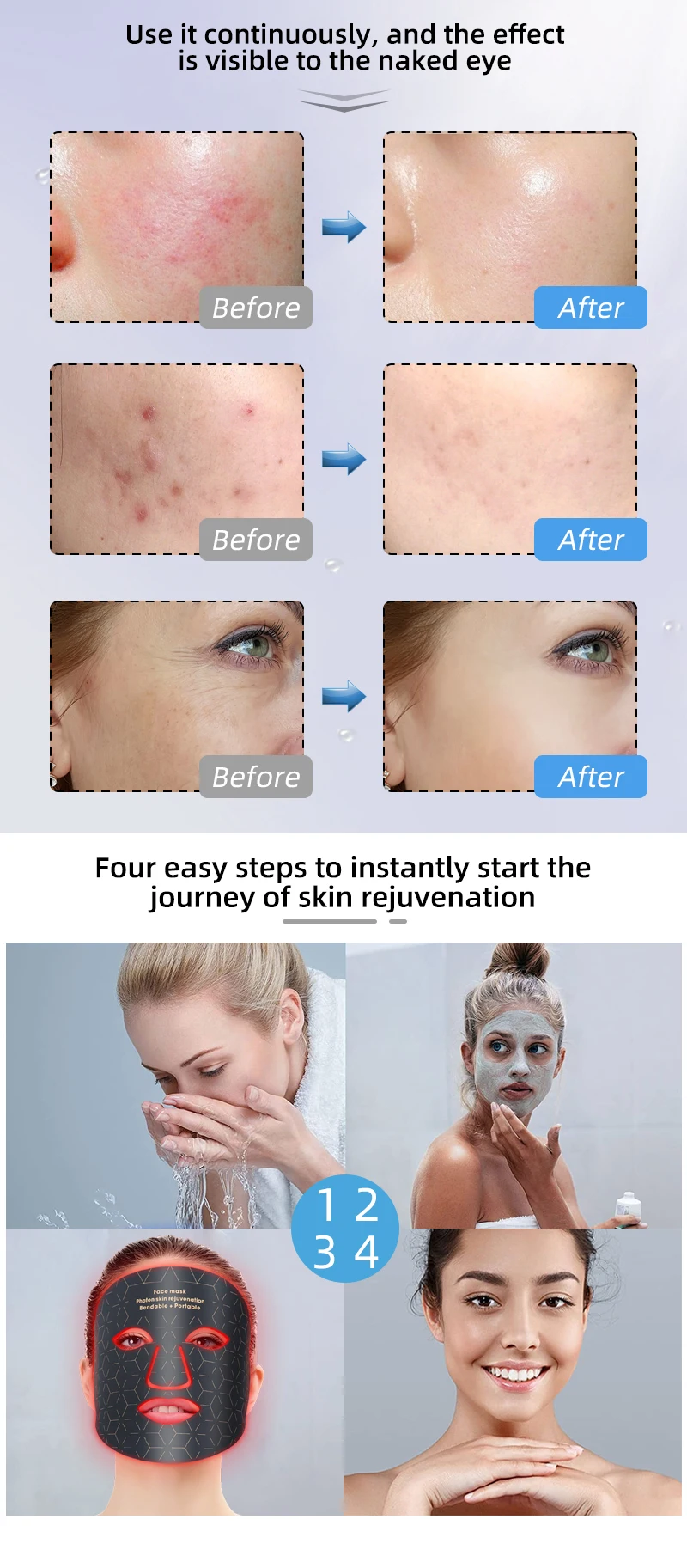 Blue light: 460nm-kill bacteria,acne bacteria,reduce inflammation and scar,increase skin oxygen;